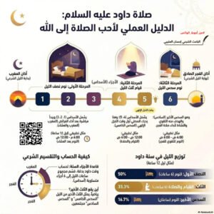 إذن: القائم بصلاة داود يدرك (أول الثلث الأخير) وهو وقت التنزل الإلهي، فيصلي فيه، ثم ينام في آخره (السدس الأخير) ليتقوى لصلاة الفجر.