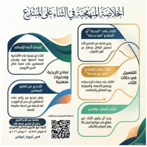 يجب أن يكون الثناء مقيدا وعادلا، ويُحذر من الثناء المطلق في مواضع البيان لئلا يغتر العوام بأخطاء الممدوح وعقيدته، فالمسألة تحتاج إلى تقوى وإنصاف.