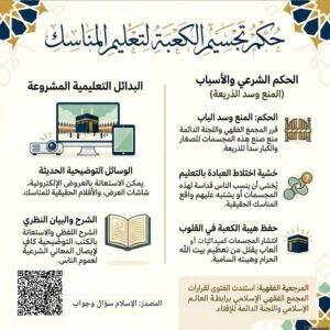 ” صناعة المجسمات من الخشب وغيره لبعض الشعائر الإسلامية كالكعبة ومقام إبراهيم والجمرات وغيرها لغرض استعمالها في التعليم لأداء مناسك الحج والعمرة على الوجه المذكور في السؤال لا يجوز ، بل هو بدعة منكرة ؛ لما يفضي إليه من المحاذير الشرعية ، كتعلق القلوب بهذه المجسمات ولو بعد حين ، وتعريضها للامتهان وغير ذلك ، مع عدم الحاجة إلى هذه الطريقة ، إذ الشرح والبيان باللسان والاستعانة على ذلك بالكتابة التوضيحية كاف شاف في إيصال المعاني الشرعية إلى عموم الناس ، وقد صح عن رسول الله صلى الله عليه وسلم أنه قال : ( من عمل عملا ليس عليه أمرنا فهو رد ) أخرجه مسلم في صحيحه ” انتهى .